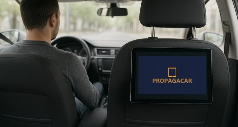 A PropagaCar é uma plataforma de mídia digital que exibe anúncios em tablets instalados dentro de carros de aplicativo, garantindo alta visibilidade e atenção total do passageiro durante o trajeto.